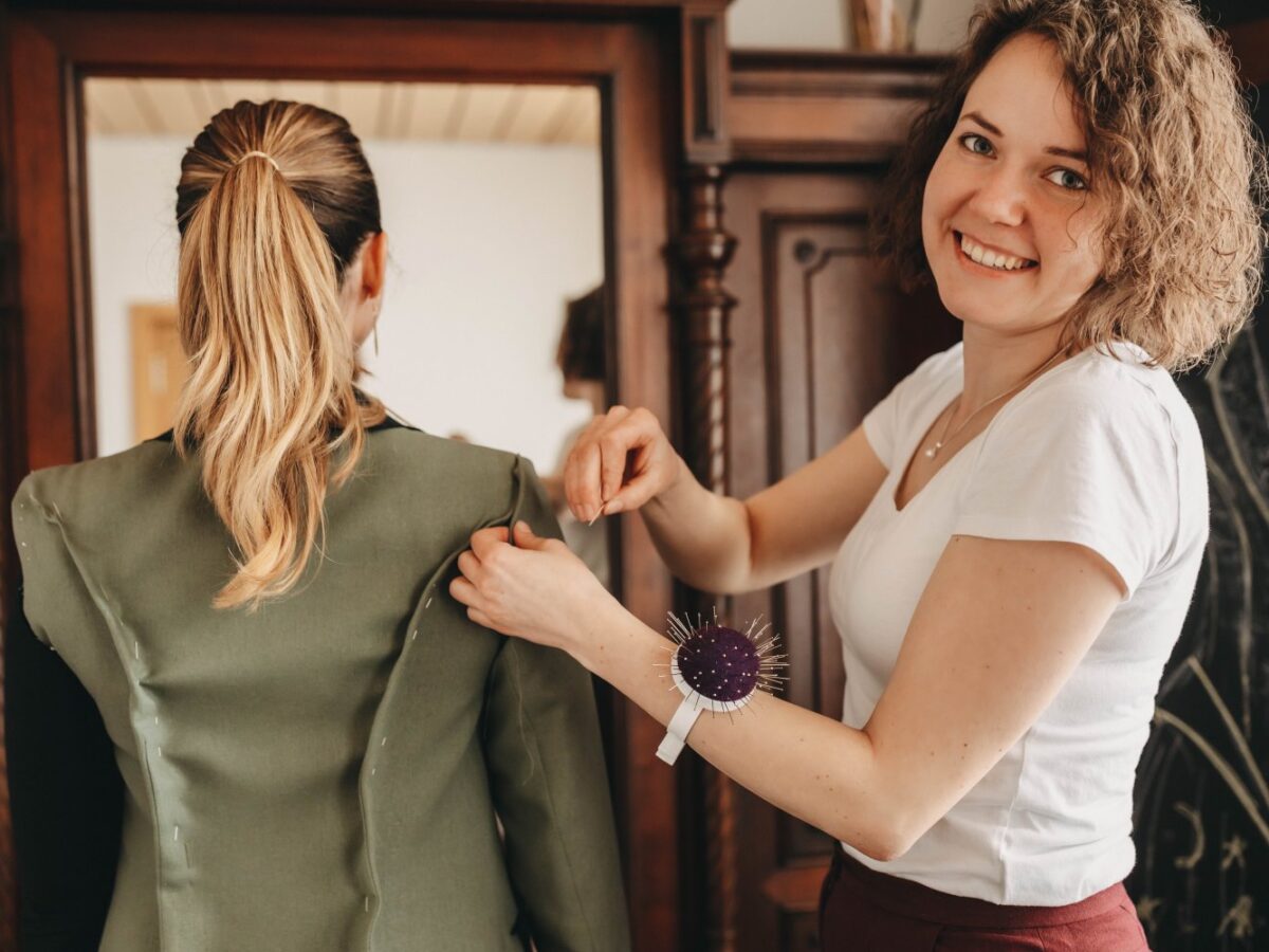Sobald alles perfekt sitzt, vollenden wir dein Gewand mit den letzten Details.